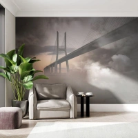 Fototapet Selvklæbende Deluxe Sticker - På en flod, der ikke eksisterer - Landskab, Bro, Arkitektur - 300x210 cm