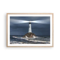 Plakat i ramme af lyst egetræ - Her...her...her! - 100x70 cm