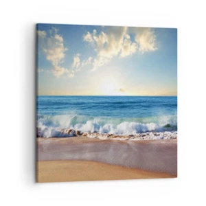 Lærredstryk - Billede på lærred - En solrig strand med bølger, der slår mod kysten - 70x50cm - Bevægelse og stilhed på samme tid - Moderne vægdekoration til stue og soveværelse ARTTOR