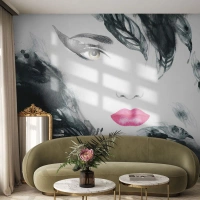Fototapet på mål Premium Sand - OBS! Femme fatale - Abstraktion, Kvindens ansigt, Portræt af en kvinde