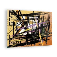 Billede på glas - Abstrakt geometrisk komposition i skarpe linjer - 70x50cm - Skarpt snit - Moderne vægdekoration til stue og soveværelse ARTTOR