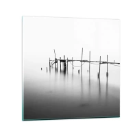 Vægur, Uret - En minimalistisk mole på roligt vand i grå nuancer - 30x30cm - Hvad nu, hvis verden ikke eksisterer? - Moderne vægdekoration til stue, køkken og soveværelse ARTTOR