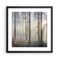 Plakat i ramme af lyst egetræ - Tågen er også vågnet op - 40x40 cm