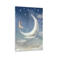 Fototapet Premium Canvas - Blå bejler - Abstraktion, For børn, Måne - 100x70 cm