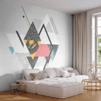 Fototapet Standard Eco - Moderne geometrisk abstraktion i pastelfarver - 100x70cm - Variation af trekanter og rhomber - Moderne vægdekoration til stue og soveværelse ARTTOR