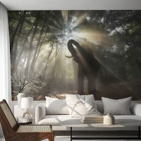 Fototapet Standard Eco - En elefant, der soler sig i en tropisk skov - 100x70cm - Under en lykkelig stjerne - Moderne vægdekoration til stue og soveværelse ARTTOR