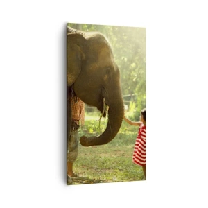 Fototapet Premium Canvas - Venskabets kraft - Dyr, Elefant, Pige - 100x70 cm