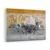 Billede på glas - Kunstnerisk abstraktion i guld, sølv og grå - 70x50cm - Alt vil falde på plads - Moderne vægdekoration til stue og soveværelse ARTTOR