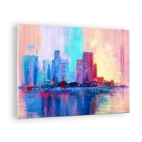 Billede på glas - En moderne by i intense farver spejlet i vandet - 70x50cm - Badet i farver - Moderne vægdekoration til stue og soveværelse ARTTOR