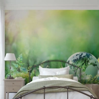 Fototapet Standard Eco - Jordens glaskugle i et grønt landskab - 100x70cm - Grøn planet - Moderne vægdekoration til stue og soveværelse ARTTOR