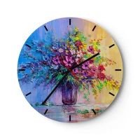 Vægur, Uret - En buket farverige blomster i en glasvase på en pastelfarvet baggrund - 30x30cm - Gave fra en sommereng - Moderne vægdekoration til stue, køkken og soveværelse ARTTOR