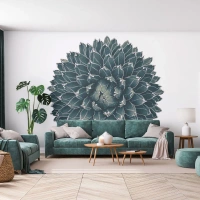 Fototapet Standard Eco - Symmetrisk agave på en hvid baggrund i minimalistisk stil - 100x70cm - Ørkenstjerne - Moderne vægdekoration til stue og soveværelse ARTTOR