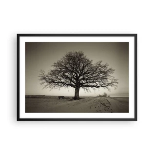 Billede på glas - Et ensomt træ i et monokromatisk landskab - 70x50cm - Herfra og til evigheden - Moderne vægdekoration til stue og soveværelse ARTTOR
