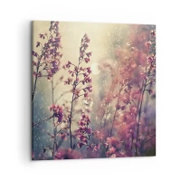 Lærredstryk - Billede på lærred - Blomster i sollys mod naturens baggrund - 70x50cm - Hemmelig have - Moderne vægdekoration til stue og soveværelse ARTTOR