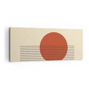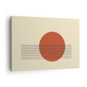 Lærredstryk - Billede på lærred - Abstrakt rød cirkel med linjer på en beige baggrund. - 70x50cm - Og så videre - Moderne vægdekoration til stue og soveværelse ARTTOR