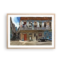 Plakat i ramme af lyst egetræ - Havana stemning - 100x70 cm