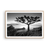 Plakat i ramme af lyst egetræ - Fred hele vejen til horisonten - 100x70 cm