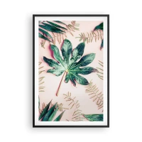 Plakat i ramme af lyst egetræ - En undersøgelse af grønt på en lyserød baggrund - 70x50 cm