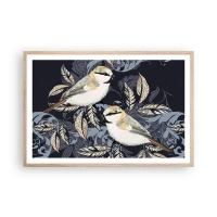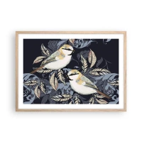 Plakat i ramme af lyst egetræ - Gul-blå espalier - 70x50 cm