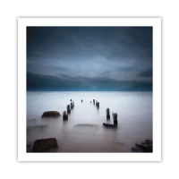 Plakat i ramme af lyst egetræ - En betænksom sø - 60x60 cm