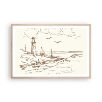 Fototapet Premium Canvas - Oversigt over sommerminder - Grafik, Kyst, Fyrtårn - 150x105 cm
