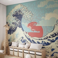 Fototapet Selvklæbende Deluxe Sticker - Fra japanske inspirationer - Abstraktion, Havbølge, Hav - 200x140 cm