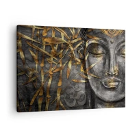 Lærredstryk - Billede på lærred - Zen Buddha-billede med gyldne bambus - 70x50cm - Mærk freden - Moderne vægdekoration til stue og soveværelse ARTTOR