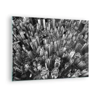 Billede på glas - Sort-hvid fugleperspektiv over byen - 70x50cm - Stadig højere og højere - Moderne vægdekoration til stue og soveværelse ARTTOR