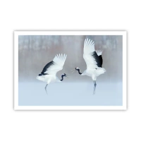 Plakat i ramme af lyst egetræ - Danser i tågen - 100x70 cm