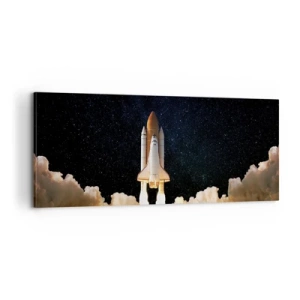 Lærredstryk - Billede på lærred - En rumraket letter mod stjernehimlen - 70x50cm - Ad astra! - Moderne vægdekoration til stue og soveværelse ARTTOR