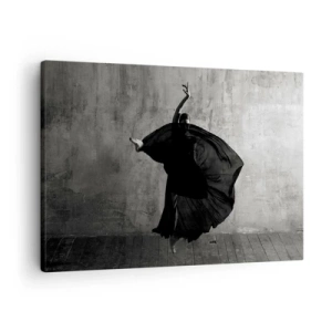 Lærredstryk - Billede på lærred - Sort og hvid silhuet af en danser i bevægelse mod en vægbaggrund - 70x50cm - Passioneret bælte - Moderne vægdekoration til stue og soveværelse ARTTOR