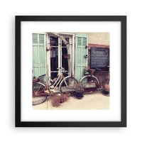 Vægur, Uret - Retrocykler foran grønne skodder - 30x30cm - Længe leve provinsen - Moderne vægdekoration til stue, køkken og soveværelse ARTTOR