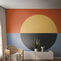Fototapet Standard Eco - Geometrisk abstraktion med en cirkel og farveopdeling - 100x70cm - En sammensætning af varme og kølighed - Moderne vægdekoration til stue og soveværelse ARTTOR