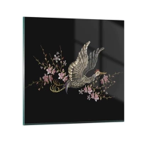 Billede på glas - Eksotisk broderet fugl - 70x70 cm