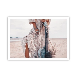 Plakat i ramme af lyst egetræ - Børn blomster på vej - 100x70 cm
