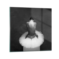 Vægur, Uret - En danser i et tylskørt siddende baglæns i sort og hvid - 30x30cm - Blomstrer nu - Moderne vægdekoration til stue, køkken og soveværelse ARTTOR