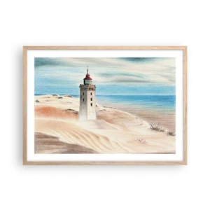 Plakat i ramme af lyst egetræ - Altid med blikket rettet mod havet - 70x50 cm
