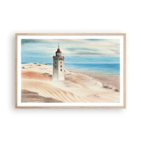 Plakat i ramme af lyst egetræ - Altid med blikket rettet mod havet - 100x70 cm
