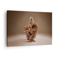 Plakat i sort ramme - Kunstnerisk billede af en kvinde i en sensuel positur mod en beige baggrund - 50x70cm - Enhed mellem krop og ånd - Moderne vægdekoration til stue og soveværelse ARTTOR