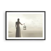 Plakat i ramme af lyst egetræ - Vær fri - 91x61 cm