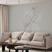 Fototapet Standard Eco - Kvindelig silhuet i stregtegningsstil på en lys baggrund - 100x70cm - At forvilde sig med blikket - Moderne vægdekoration til stue og soveværelse ARTTOR