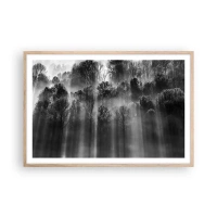Plakat i ramme af lyst egetræ - I stråler af lys - 100x70 cm