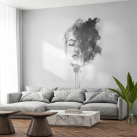 Fototapet Premium Sand - Hvad piger drømmer om - Portræt af en kvinde, Kvindens ansigt, Abstraktion - 100x70 cm