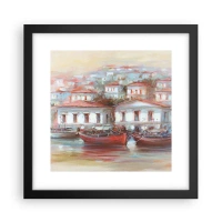 Vægur, Uret - En malerisk havn med både og middelhavsarkitektur - 30x30cm - Lykkelig by - Moderne vægdekoration til stue, køkken og soveværelse ARTTOR
