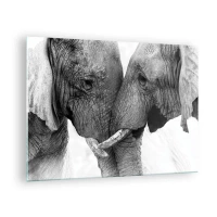 Billede på glas - To elefanter rører panden i sort-hvid - 70x50cm - Hjertelig tilståelse - Moderne vægdekoration til stue og soveværelse ARTTOR