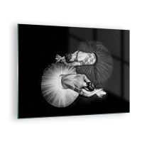 Billede på glas - To ballerinaer i hvilestilling iført sorte og hvide tutuer - 70x50cm - Yin og yang - den perfekte balance - Moderne vægdekoration til stue og soveværelse ARTTOR