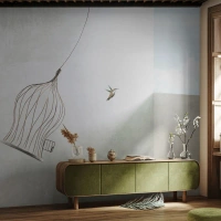 Fototapet Selvklæbende Deluxe Sticker - I sit elementet - Abstraktion, Fugl, Fuglebur - 400x280 cm