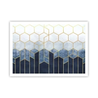 Plakat i ramme af lyst egetræ - Komposition i synkoperet rytme - 100x70 cm