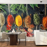 Fototapet Standard Eco - Kulinarisk magi - Krydderier, Urter, Køkken - 500x350 cm