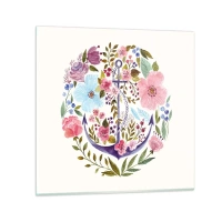 Vægur, Uret - Et lilla anker omgivet af farverige blomster - 30x30cm - En sømands gode nattesøvn - Moderne vægdekoration til stue, køkken og soveværelse ARTTOR
